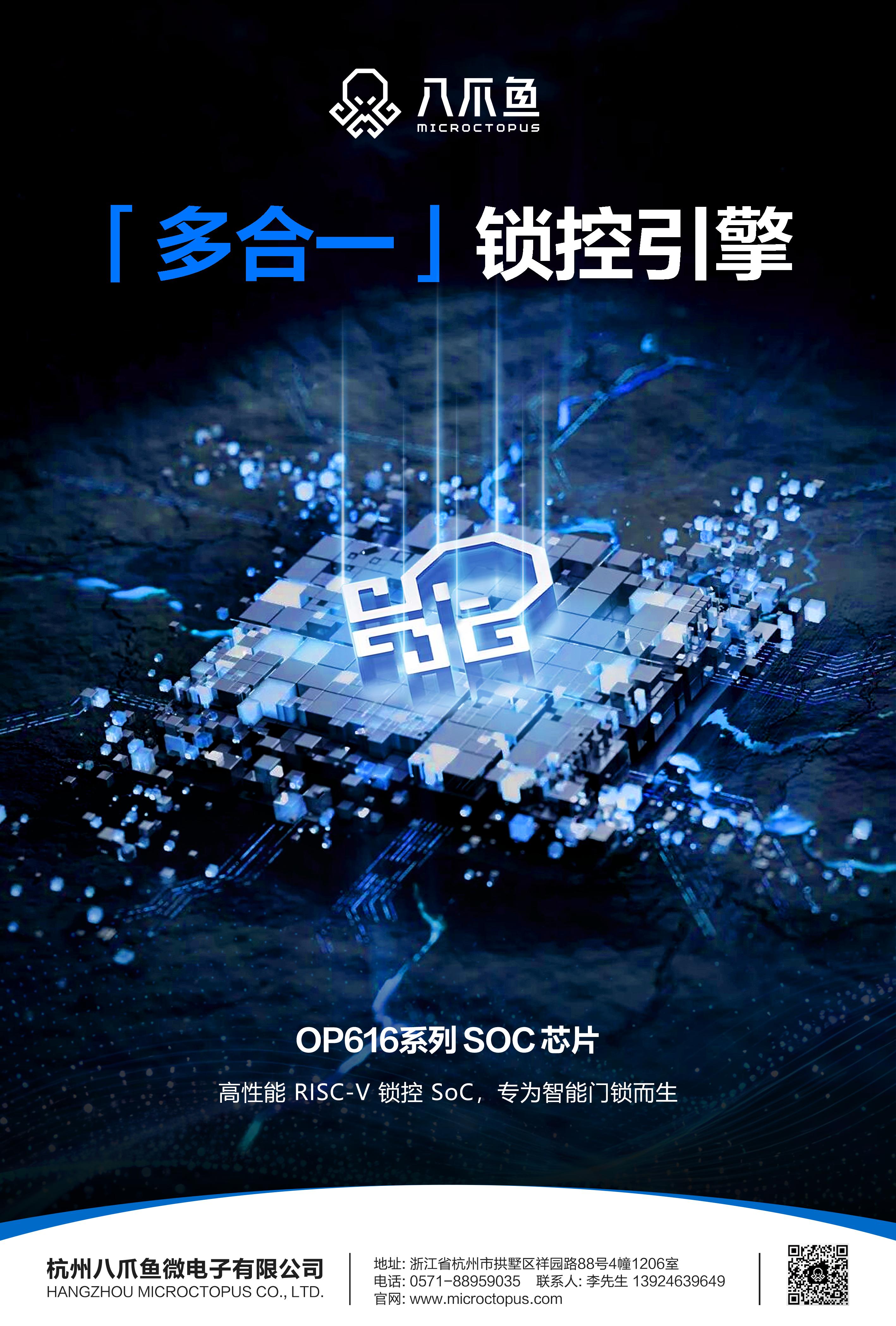 查看更多八爪鱼微电子发布 OP616 系列多合一智能门锁主控 SoC